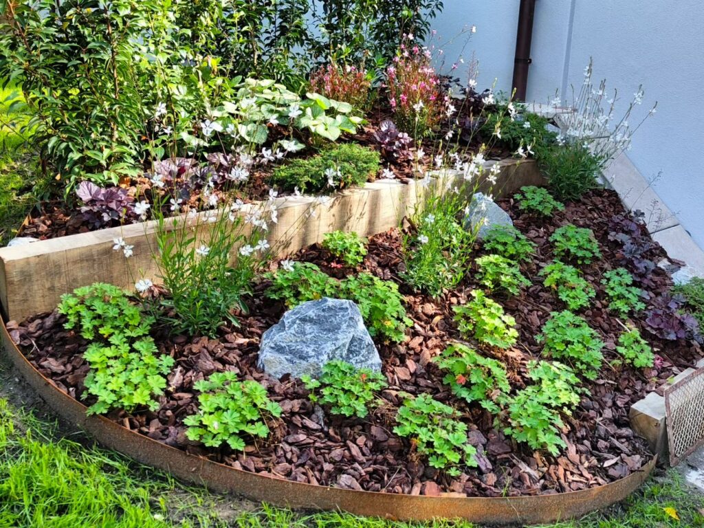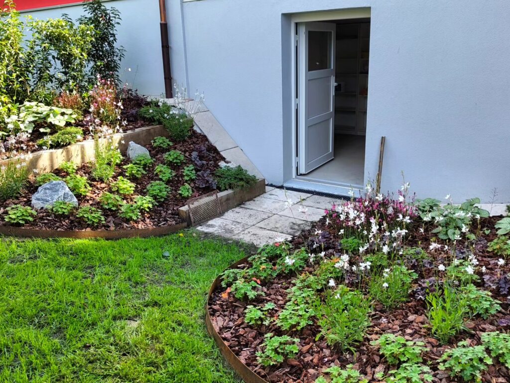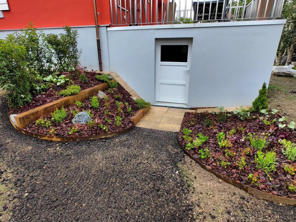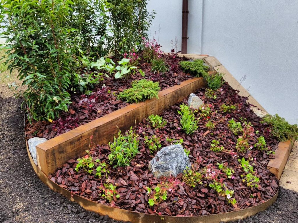 Serre froide Aménagement d’une serre froide et chemin d’accès en gravier, borduré avec poutres en Chêne et acier Corten. À Préverenges. Découvrir le projet